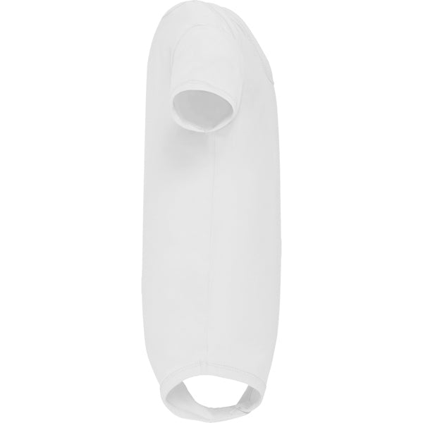 Body de bebé con manga corta de punto liso. Cuello redondo y bajo ribeteado en canalé 1x1. Cierre con botones a presión en la entrepierna. Hombro de apertura cruzada.